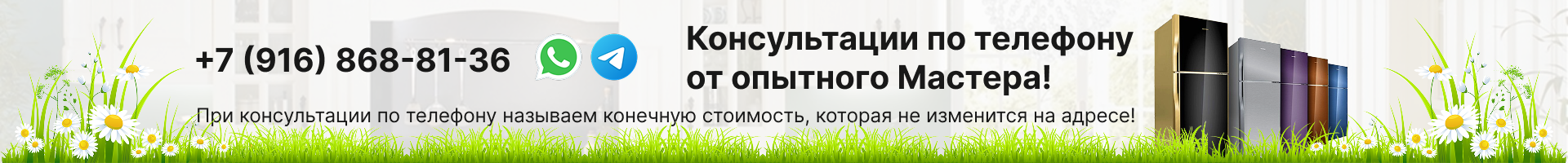Выполняя ремонт холодильника, мастер может проконсультировать вас по вопросам эксплуатации данной модели. Консультации проводятся бесплатно. Вы можете назначить визит мастера на удобное время прямо сейчас – оформление заявки займет не более 2 минут вашего времени!